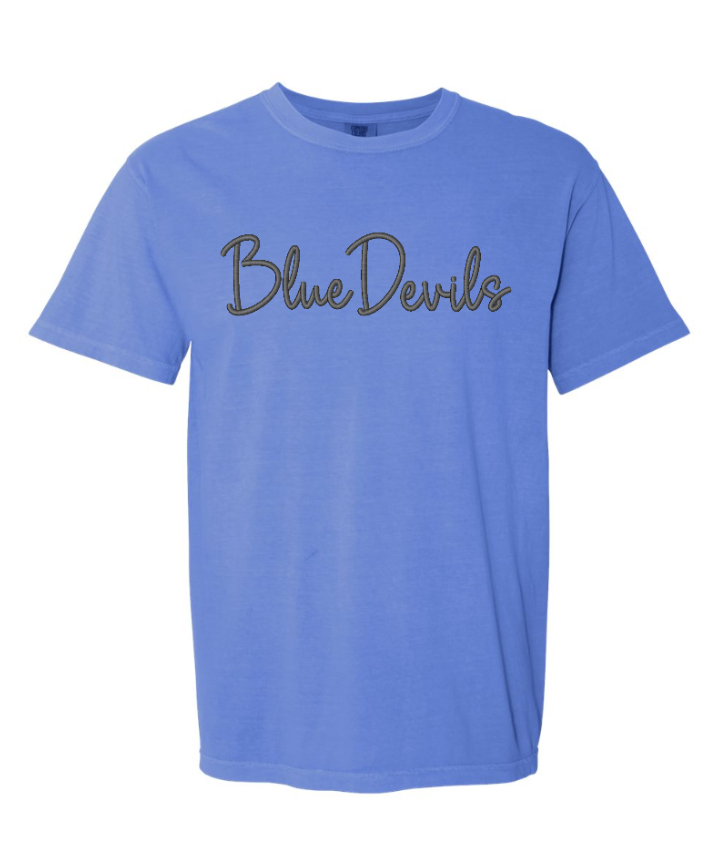 Get ready to rock with the Blue Devils Puff Embroidery tee! Made with comfort colors for all-day comfort, this tee is perfect for both youth and adults. Show off your team spirit in style.