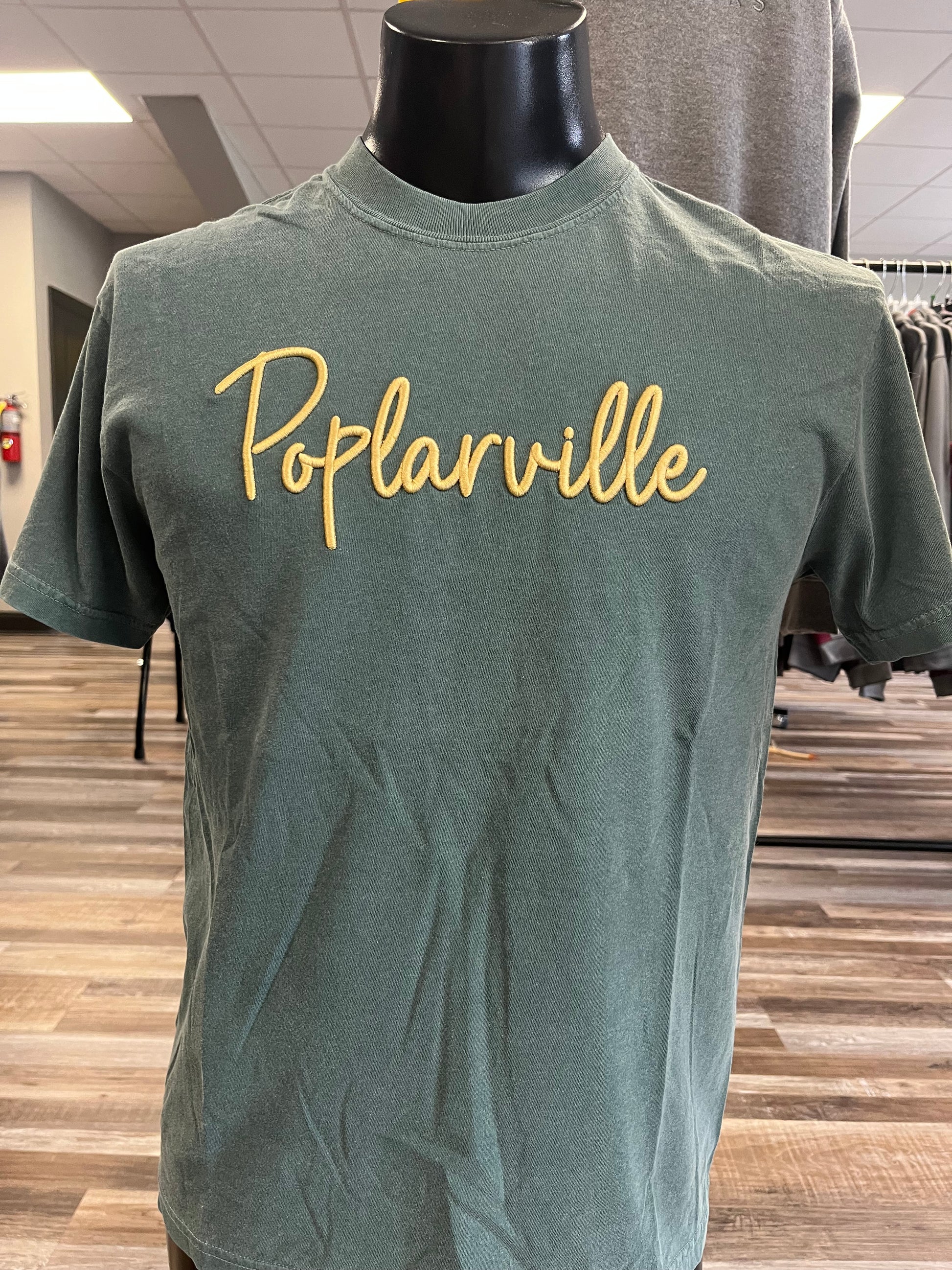 Get ready to puff in style with the Poplarville Puff tee! Made with 100% ring-spun cotton and a relaxed fit, this Comfort Colors tee is perfect for lounging or on-the-go. Plus, it's garment dyed and embroidered for a unique touch. Get yours now!