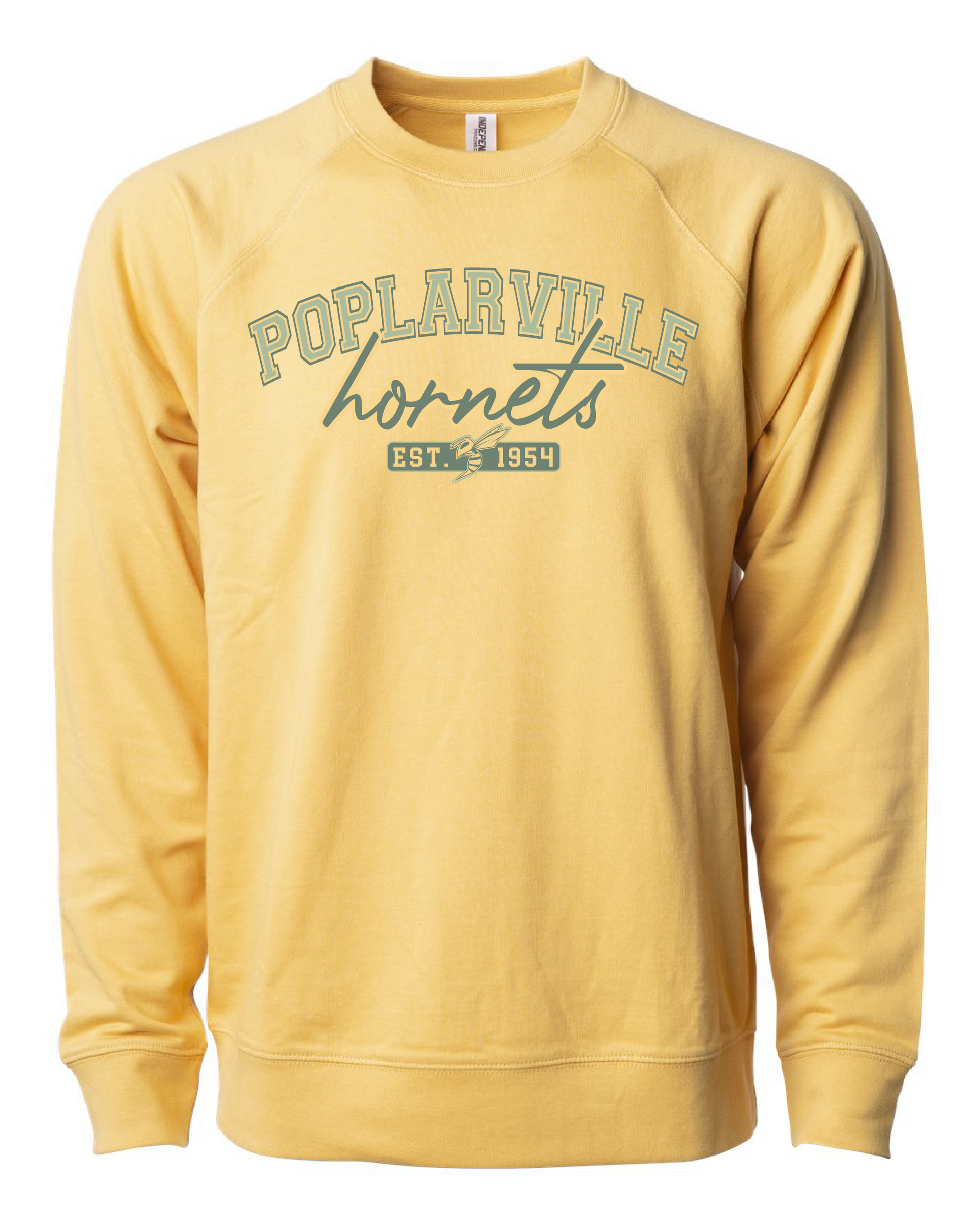 Introducing the Poplarville Vintage Arch Sweatshirt, a durable yet comfortable Independent Trading Co. creation. Made from a blend of 55% ring-spun cotton and 45% polyester, this unisex sweatshirt features loopback terry fabric for added softness and a slim fit for a stylish and modern look. Elevate your wardrobe with this vintage-inspired piece today!