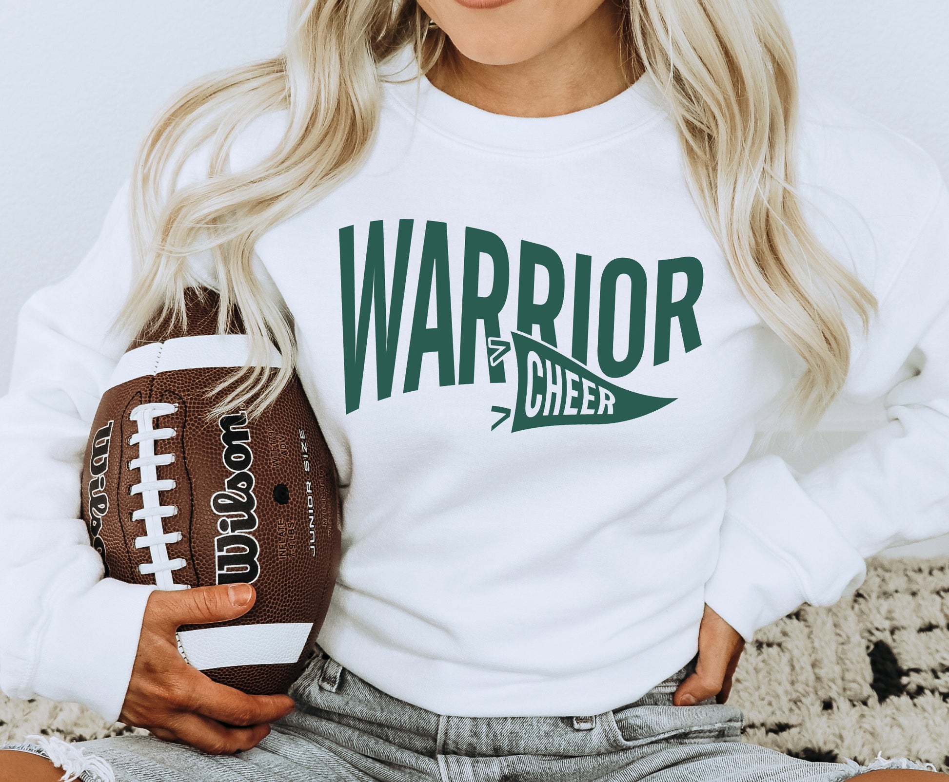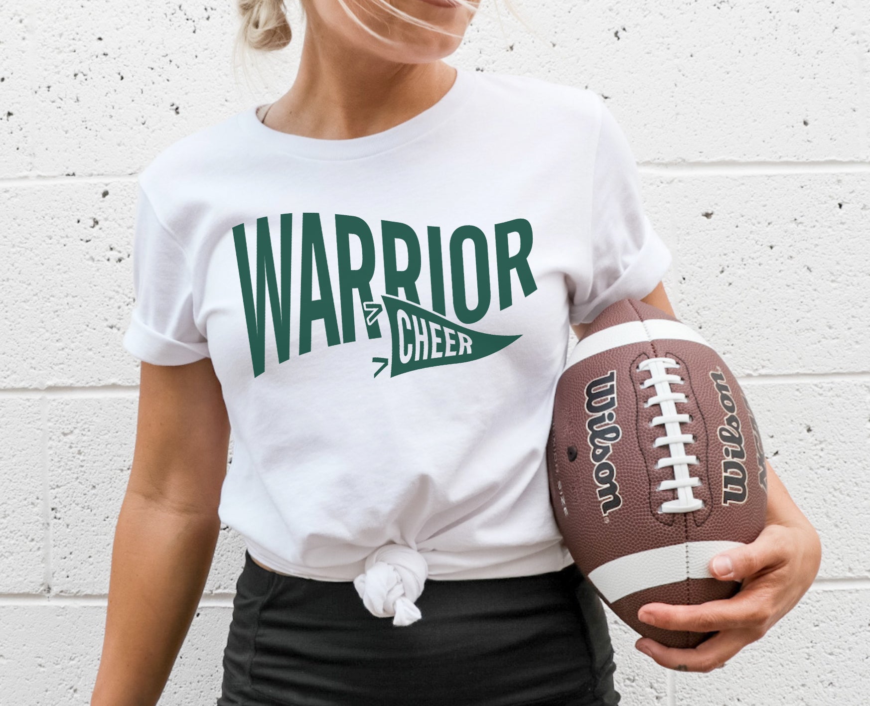 This cool Warrior Cheer shirt features a trendy font set and spirit pennant, so you can rep your team in style. Perfect for any activity, the comfy fabric will keep you comfortable and looking sharp! What a warrior!